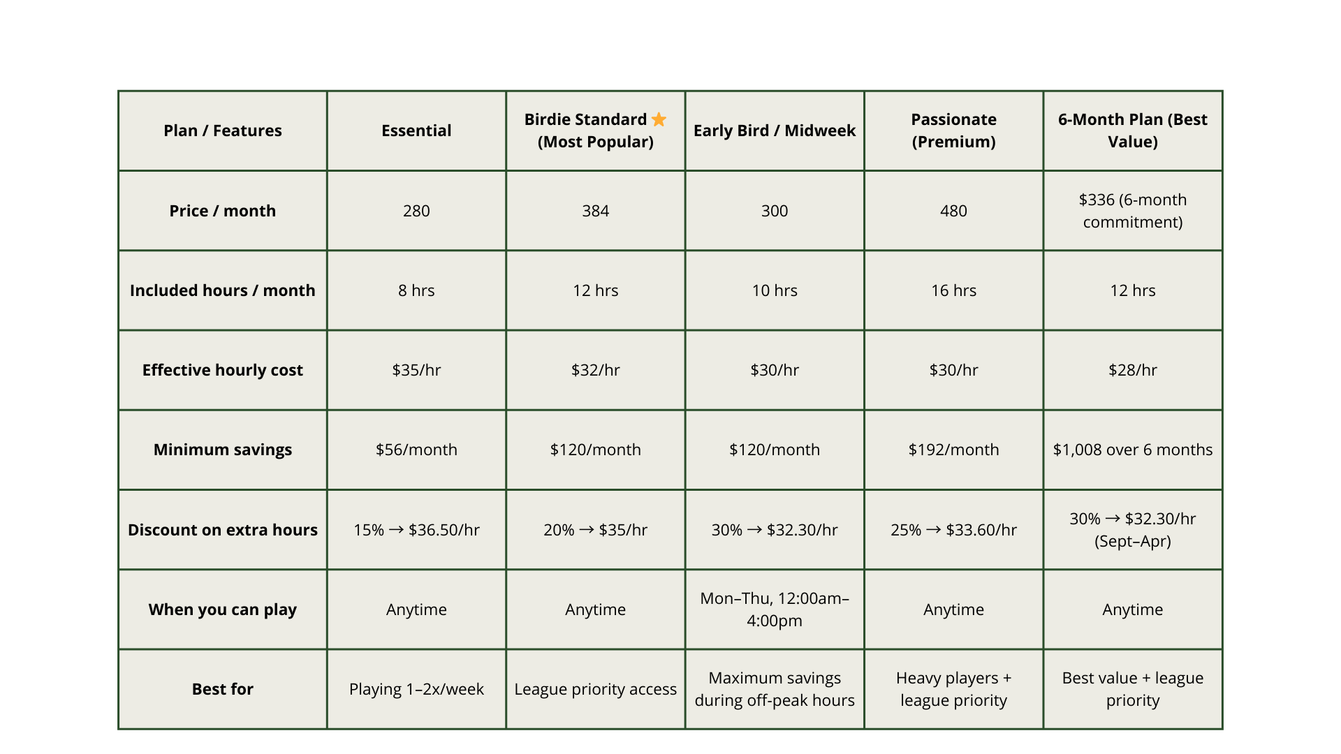 Choose one of our monthly memberships to save on indoor golf.
